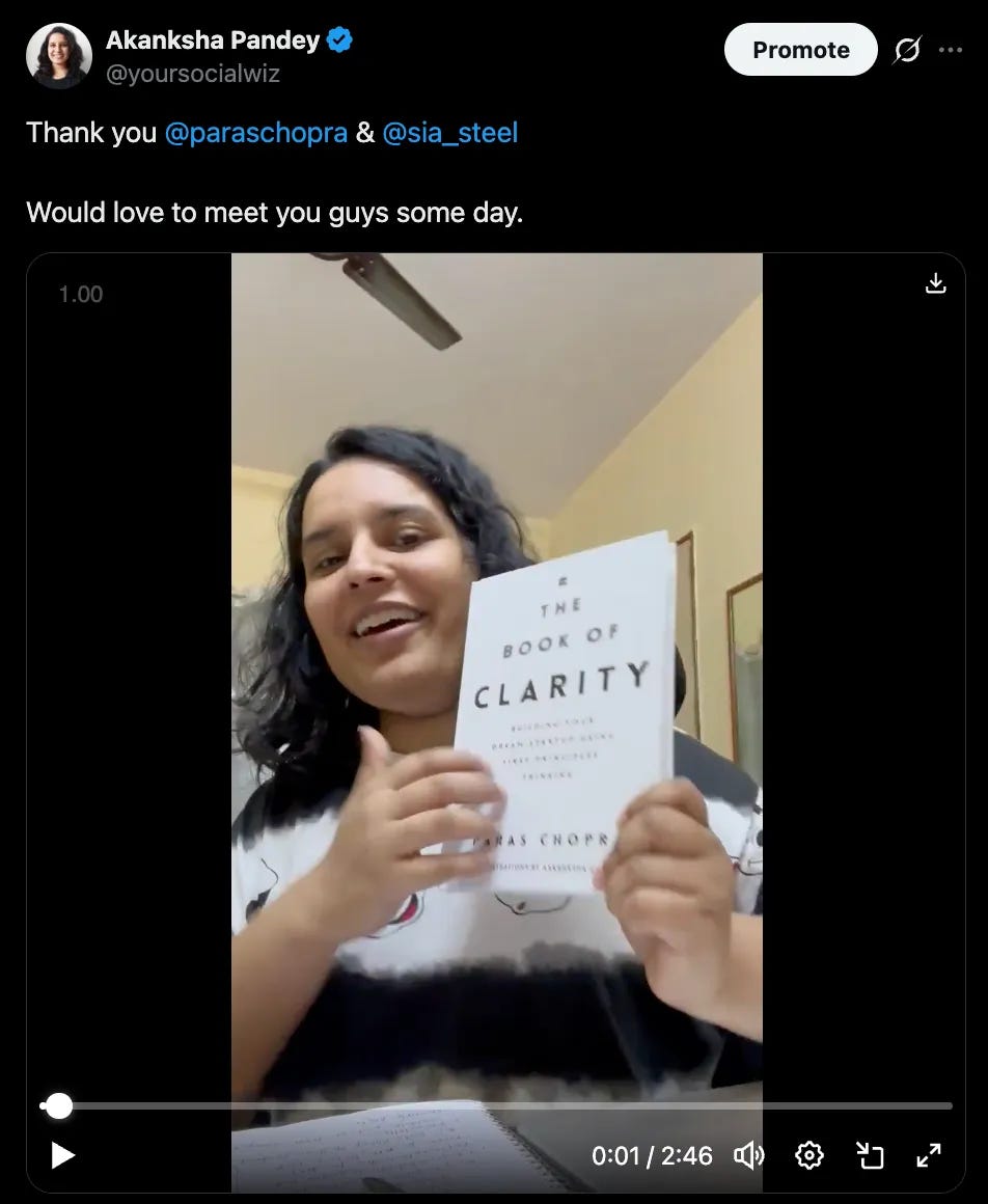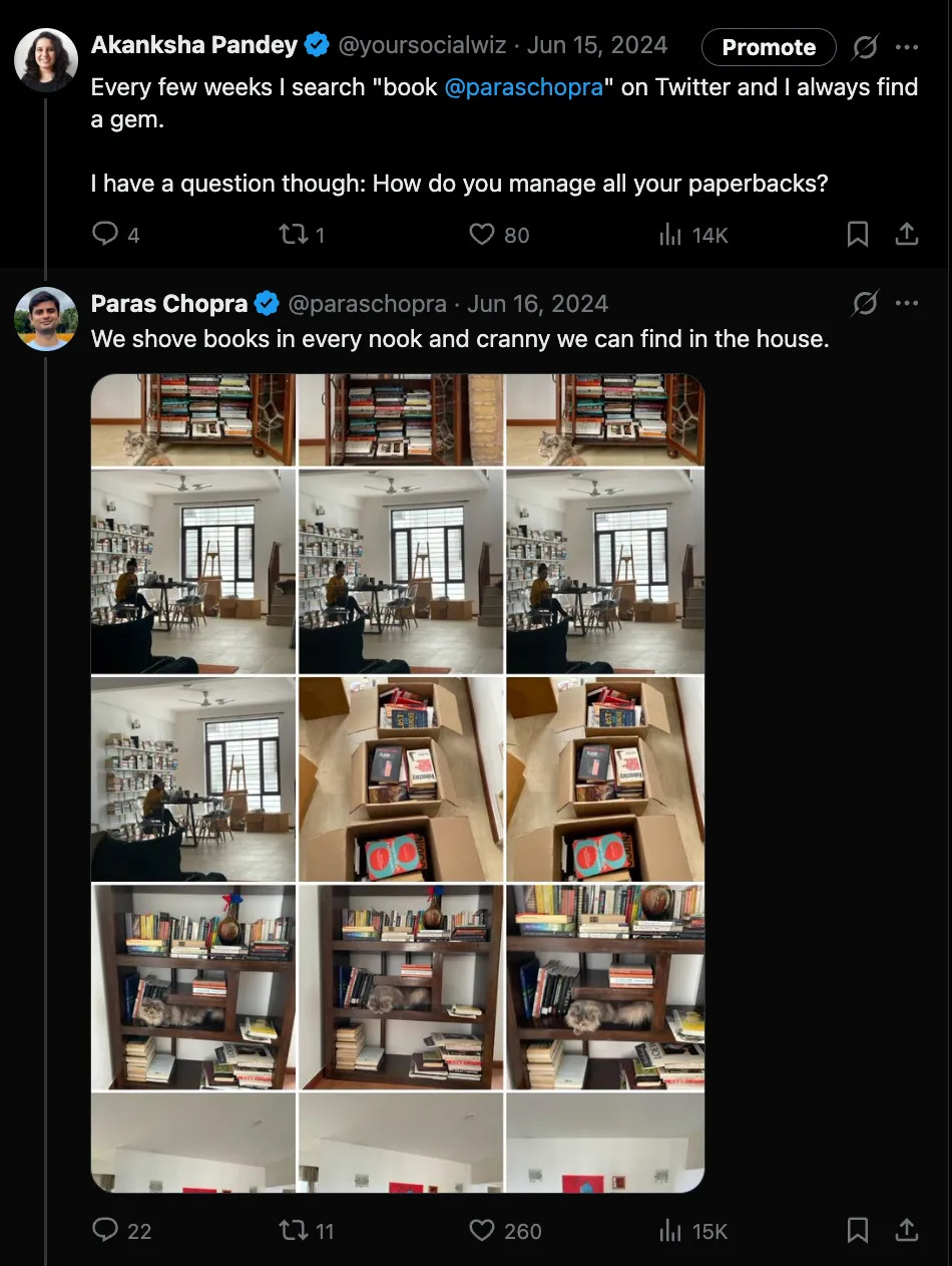 One evening I followed Paras on Twitter. I must have liked one of his tweets. Then a few more tweets, then scrolled his feed. I didn’t know what he was working on. Just that he is a chill guy with interesting thoughts and has good taste in books. 18 months went by, I read 100s of his tweets but I don’t remember most of them.